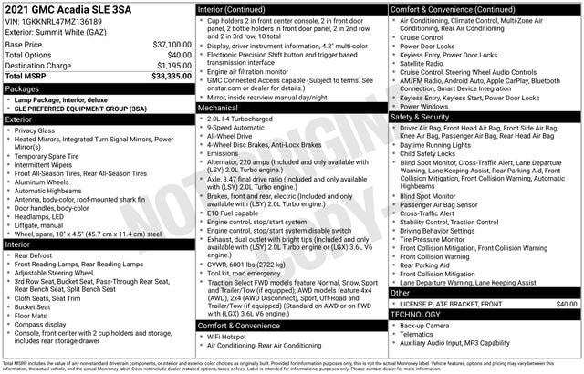 Used 2021 GMC Acadia SLE